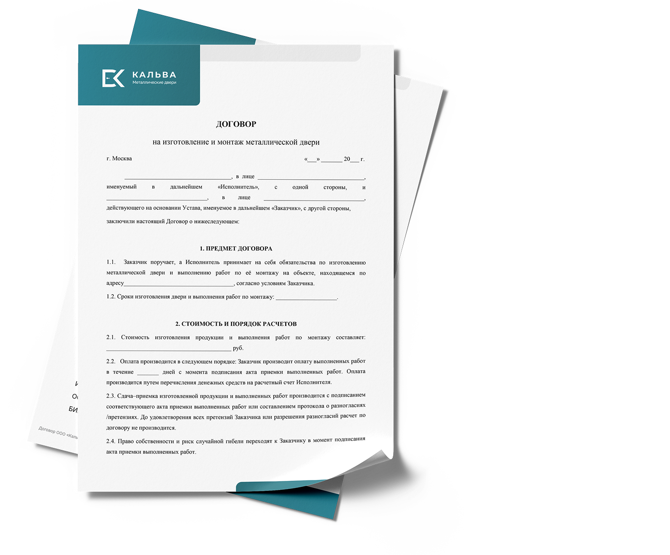 «Двери Кальва» — это собственное производство металлических входных дверей полного цикла. С 2004 года мы изготавливаем и устанавливаем двери в Жуковском и Московской области, обеспечивая высший уровень качества. Мы предлагаем решения для квартир, частных домов, коммерческих объектов и промышленных помещений: от стандартных моделей до эксклюзивных дверей на заказ по вашему проекту.